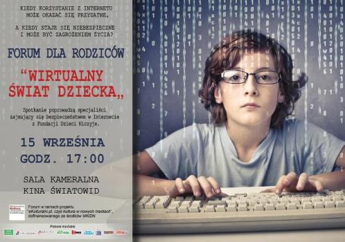 Forum Wirtualny świat dziecka odbędzie się w poniedziałek, 15 września, o godzinie 17, w sali kameralnej kina Światowid.