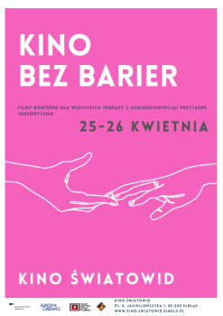 „Kino bez barier” to festiwal filmów, który dedykowany jest osobom z różnymi niepełnosprawnościami: niedowidzącym, niewidzącym, niedosłyszącym, ale także starszym. Podczas dwudniowego przeglądu przewidziane są także projekcje dla dzieci i młodzieży ze specjalnymi potrzebami, m.in. zmagającymi się ze spektrum autyzmu.