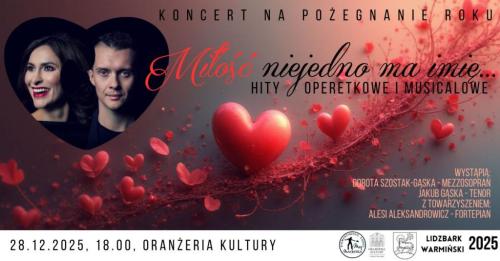 Oranżeria Kultury w Lidzbarku Warmińskim zaprasza na KONCERT NA POŻEGNANIE ROKU – MIŁOŚĆ NIEJEDNO MA IMIĘ, który odbędzie się w niedzielę, 28 grudnia o godz. 18.00.