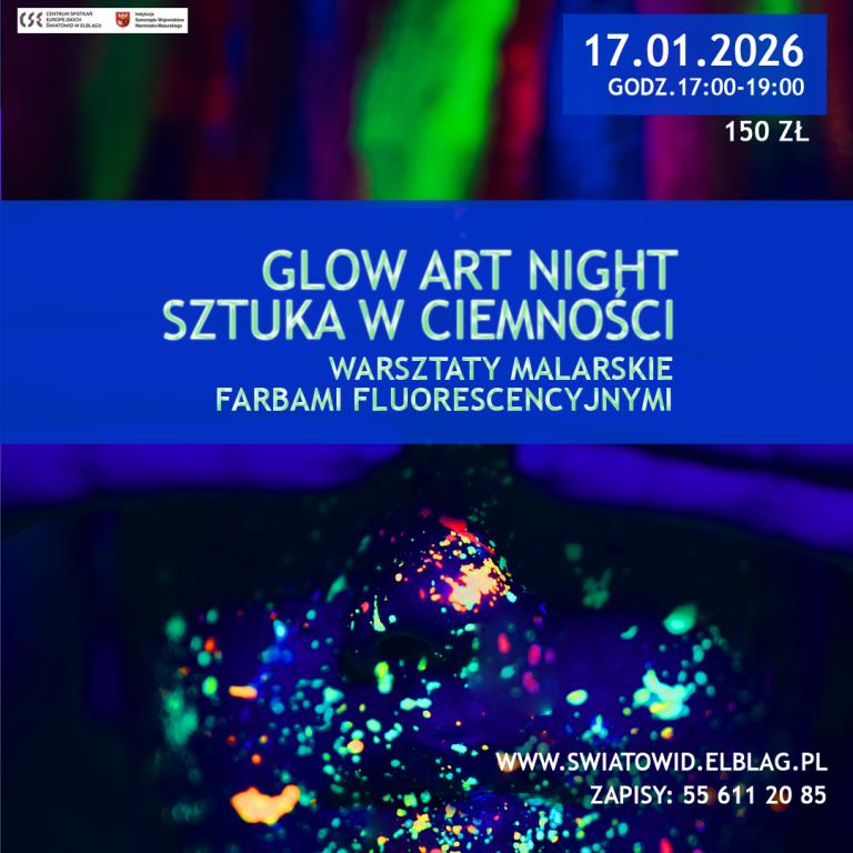 Centrum Spotkań Europejskich „Światowid” w Elblągu zaprasza na wyjątkowe warsztaty malarskie dla dorosłych pt. „Glow Art Night – Sztuka w Ciemności”. To artystyczne spotkanie, które łączy twórczą swobodę, dobrą zabawę i niepowtarzalną atmosferę pełną światła, koloru i relaksu.
