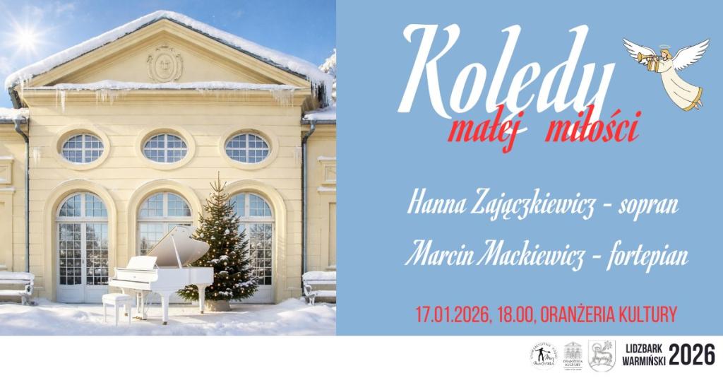 Oranżeria Kultury w Lidzbarku Warmińskim zaprasza na koncert KOLĘDY MAŁEJ MIŁOŚCI wieńczący świąteczny czas noworoczny. W sobotę, 17 stycznia o godz. 18:00 wystąpią Hanna Zajączkiewicz – sopran oraz Marcina Mackiewicz – fortepian.