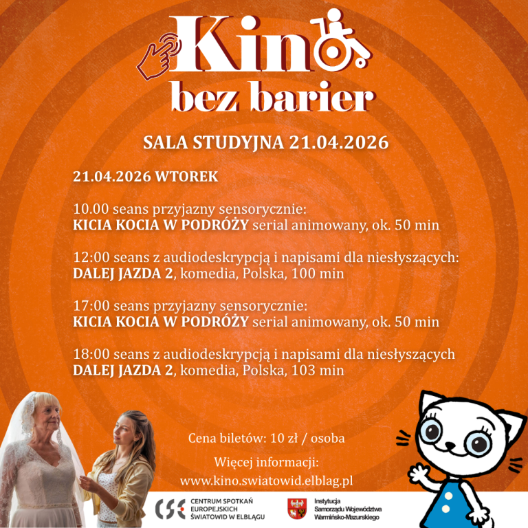 Kino Światowid zaprasza na czwartą edycję wydarzenia „Kino bez barier” – przeglądu filmowego dedykowanego osobom z różnymi potrzebami. Tegoroczna odsłona odbędzie się w dniach 21–22 kwietnia 2026 roku i tradycyjnie stworzy przestrzeń do wspólnego, komfortowego uczestnictwa w seansach filmowych.
